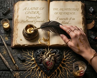 C. Wylde is the writer and curator of the A Lathe of Cinder archives—a sanctuary for those who have stood in the ruins of their own history and chosen to build something unyielding. Crafting at the volatile edge where ancient aesthetics meet the modern soul, Wylde treats poetry not as a performance, but as a somatic ritual of reclamation. Across six visceral movements, they meticulously deconstruct the architecture of the past—the soot, the rubble, and the blackened iron—to forge a new sovereignty of marrow and gold. “Find the crack where the iron broke. This is the lathe. Begin the grind.” For Wylde, the "soul work" of modern existence requires more than just observation; it requires the friction of the cinder and the fluidity of the heart. Whether through dark contemporary verse or visual oracles, their mission is to guide the seeker through the transformative alchemy of the self, turning the internal landscape into a cathedral of reverence. The architecture is igniting.